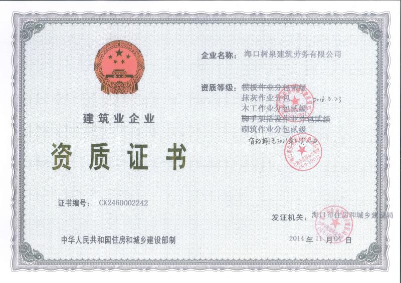 ??跇淙ㄖ趧沼邢薰境闪⒂?011年,公司位于??冢淝吧硎且患覍I建筑施工隊,自2004年即開始在海南從事建筑勞務施工。自成立至今,公司已經擁有一支科學管理、質量過硬、能打硬仗,搶工期的專業隊伍。能獨立承擔大中型工業與民用建筑 、室內外裝修、各類機電設備安裝工程。代表工程有??跒I海華庭、三亞時代海岸T01/02/04/05棟高層、合肥東?;▓@二期、陵水富力灣B區高層、三亞金中海(酒店)、瓊海大印經典花園、海口環球海景大酒店(四星級酒店,在建中)、陵水珍珠大廈(五星酒店)、海口萬達廣場、美蘭機場二期。